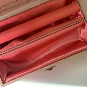 Contains 2 lined storage compartments and a removable lined bangle bar.